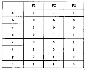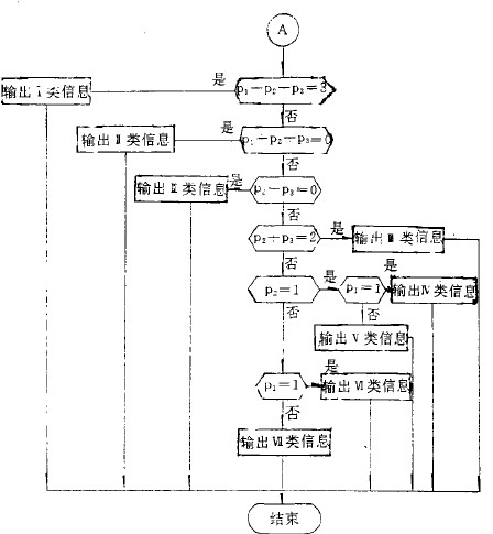 標(biāo)準(zhǔn)判定軟件的程序框圖如圖6 和圖7 所示。圖中的PI 、 PZ 、 P3 分別是產(chǎn)品圖的環(huán)形結(jié)構(gòu), 槽形結(jié)構(gòu)和扣片(記號) 形結(jié)構(gòu)的標(biāo)準(zhǔn)特征值。如結(jié)構(gòu)尺寸判定為標(biāo)準(zhǔn), 則等于1 , 反之為0。 P 1 、 P2 和P3 的組合形式見表1 。